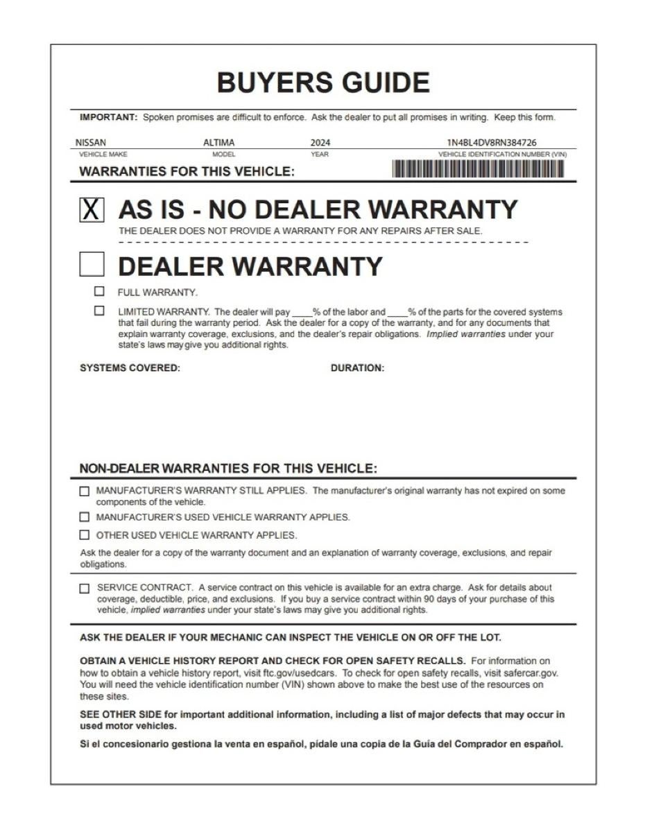Looking for a clean, well-cared for 2024 Nissan Altima? This is it. When it comes to high fuel economy, plenty of versatility and a great looks, this NissanAltima 2.5 SV cannot be beat. This Nissan Altima's superior fuel-efficiency is proof that not all vehicles are created equal. This is about the time when you're saying it is too good to be true, and let us be the one's to tell you, it is absolutely true. You can finally stop searching... You've found the one you've been looking for. You could keep looking, but why? You've found the perfect vehicle right here.